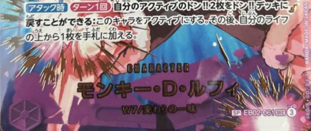 Le moyen le plus simple d’identifier une carte est le numéro et le symbole en bas à droite (ex : OP01-121 SEC).