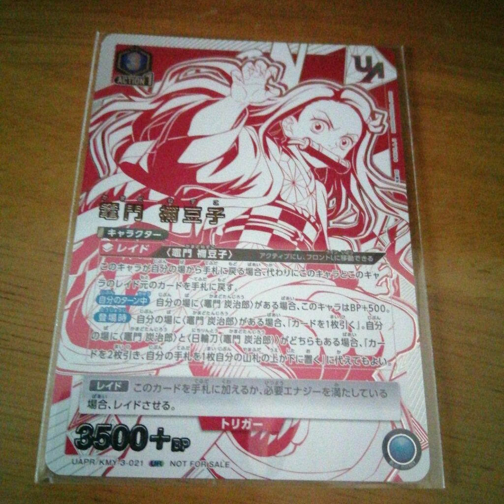 De plus, des articles tels que les « cartes gaufrettes Demon Slayer » (Wafer Cards) et les « cartes transparentes » (Clear Cards) sont également publiés par des entités comme Bandai Candy à des fins de collection. Bien que ces cartes fassent partie d’une série différente d’UNION ARENA, elles atteignent souvent des prix élevés en raison de leurs designs limités et de leurs inclusions spéciales.